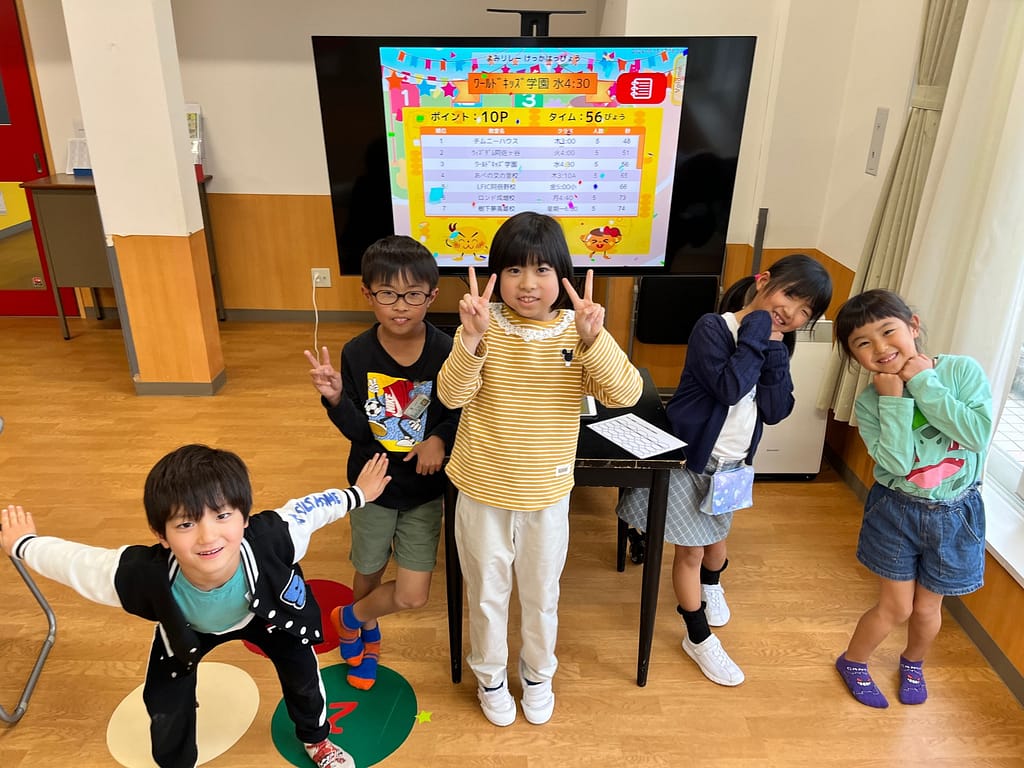 身につけた力をアウトプットします。全員リレーで、世界の教室と競争しています。
