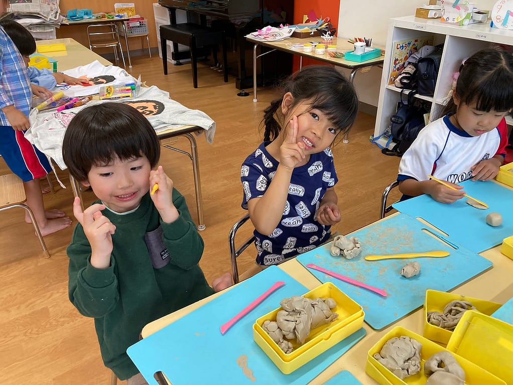 昨日は雨が降り、室内で遊びました🎵元気いっぱいのミドル&シニアです😄粘土大好き~!