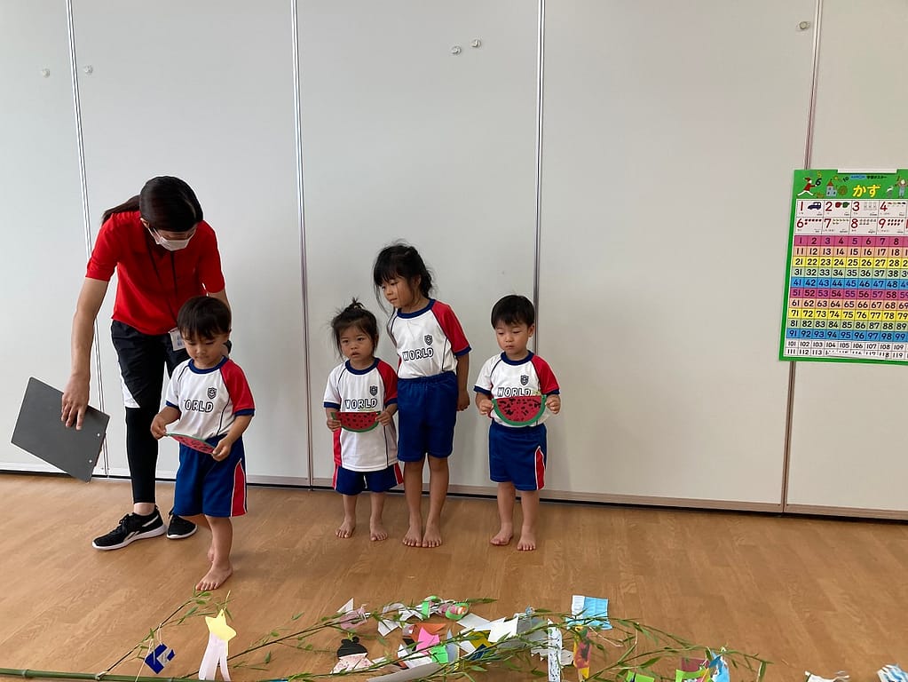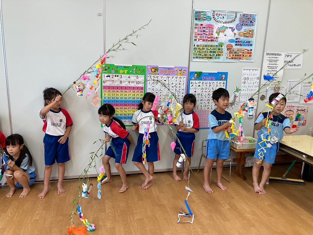 先週七夕会をしました!みんなでお願い事を書いて、飾りをつけました😄シニアさんは一人一人お願い事を発表してもらいました☆文字も上手に書けました!叶うといいね☆彡