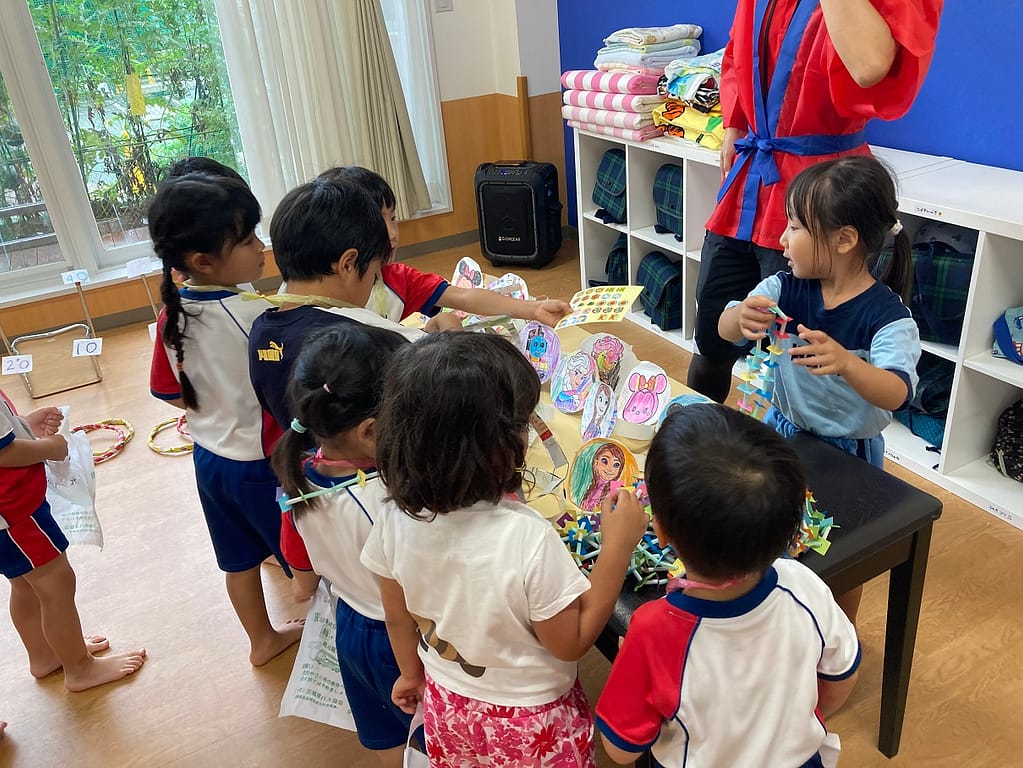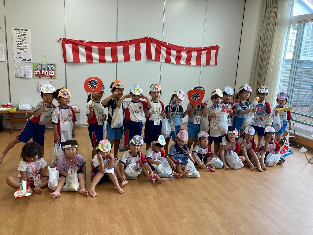 ワイワイ賑やか、お祭りの雰囲気を存分に楽しめた子ども達です☆これから夏本番!ぜひご家族でお祭りに出掛けてみてはいかがでしょうか😄