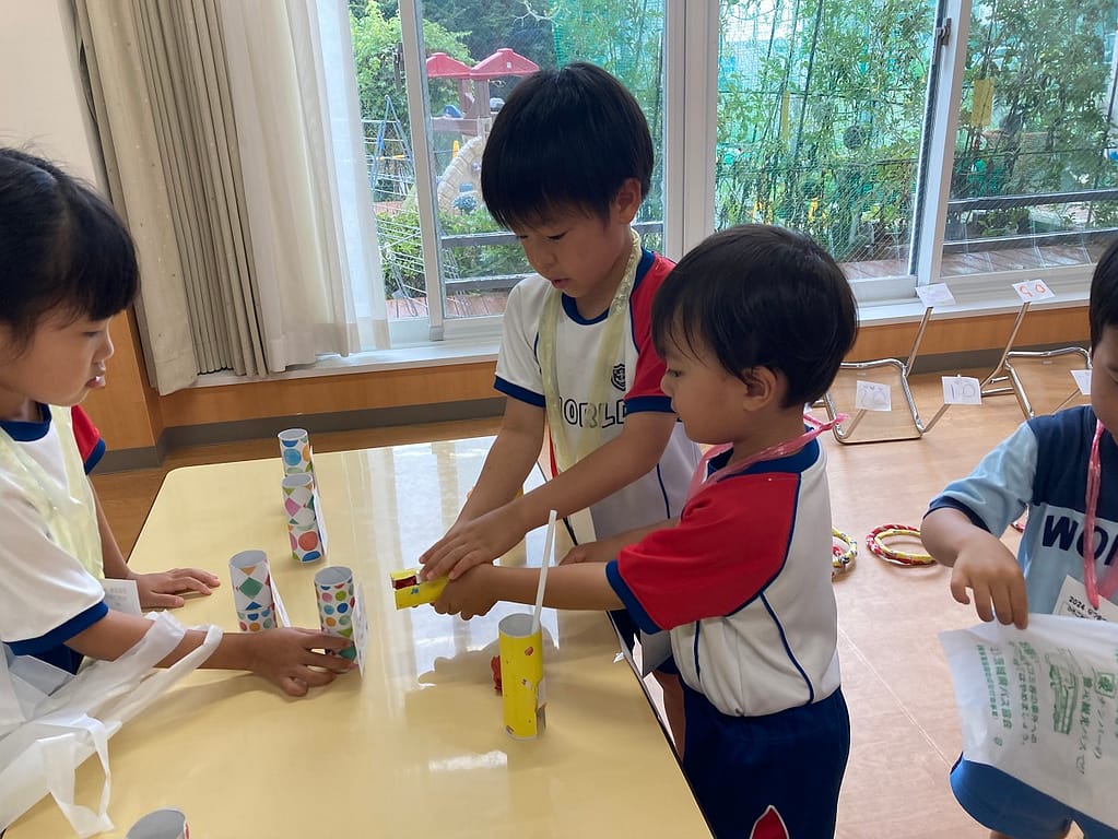 続いては、みんなが楽しみにしていた夏祭りごっこのスタートです!前日まで商品作りを頑張ってくれたシニアさん☆「店員さんもやりたい!」ということで、順番に売り手と買い手を体験しました。