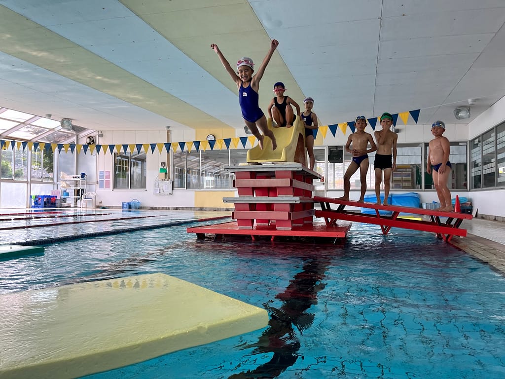 お昼を食べてから、学童クラブは夏休み最後のプール遊びに行きました。