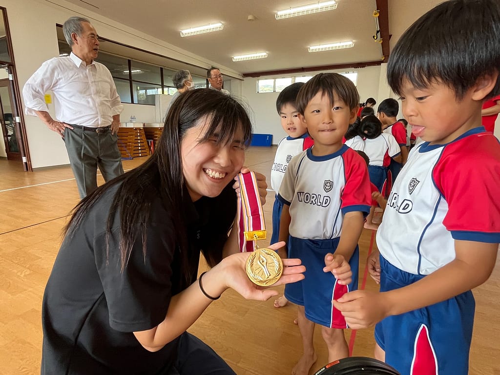 日本一のメダル🥇をみんなで触らせて頂きました🙌
