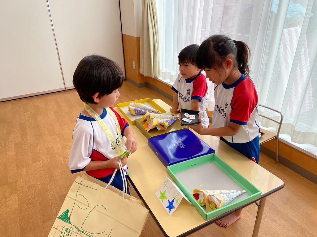 お楽しみ会では、お店屋さんごっこをしました!みんな店員さん、お客さんになりきって楽しみました😄「いらっしゃいませ~!」呼び込みも大きな声で上手にできました☆