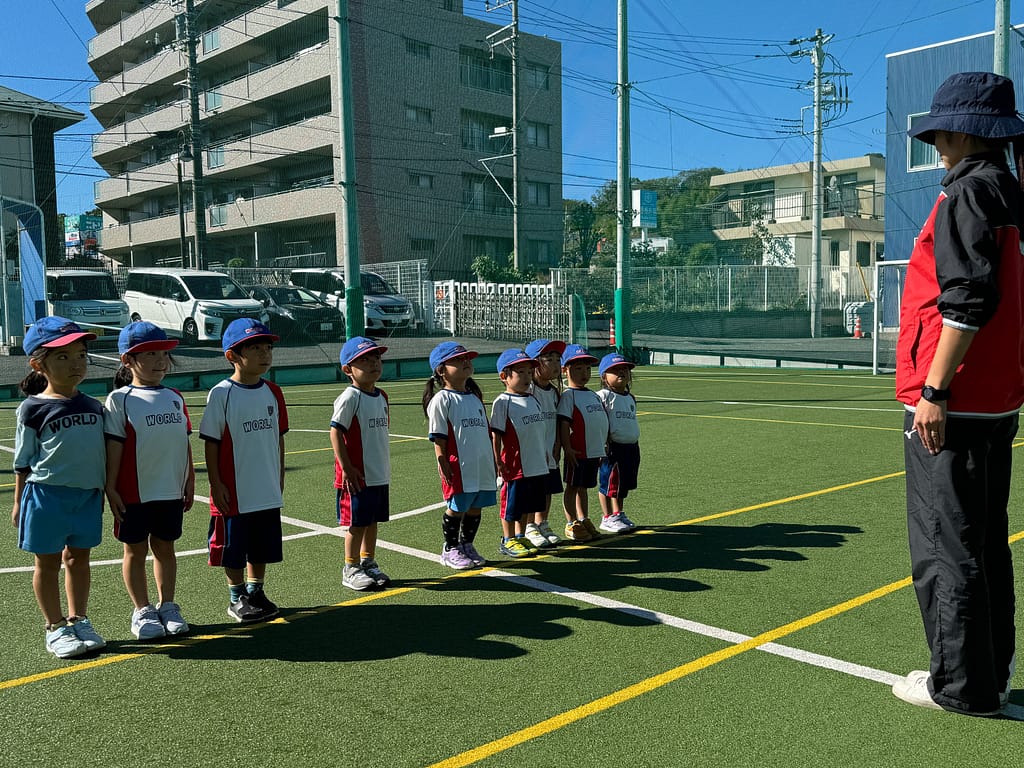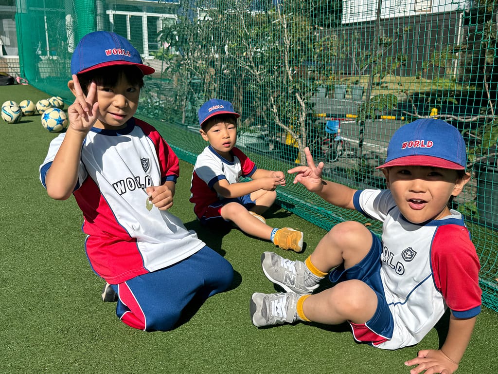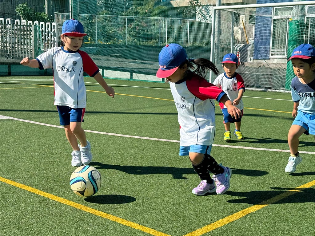 セミジュニア・ジュニアクラスの体育授業です。グラウンドでサッカーをやっています⚽️