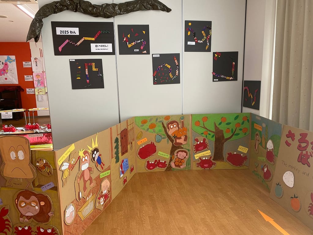 学童クラブ・アートクラフト教室・英会話教室のお友達は「日本のものがたり~さるかにばなし~」の大きな絵本を作りました!やっぱり絵がとっても上手でした!!