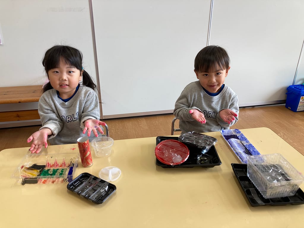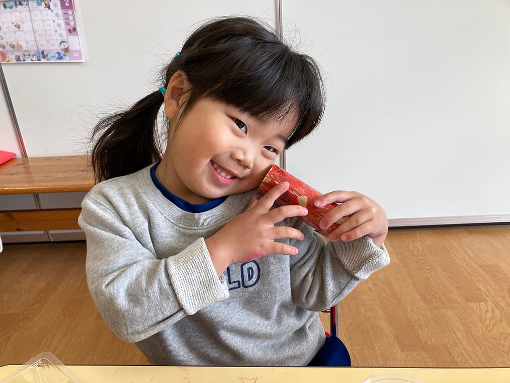 今日も寒さが厳しい中、元気に登園してくれました!ブロックでコマ作りをしたり、工作したりと楽しく過ごしました😄