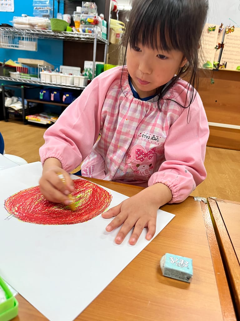 塗り方のコツは、りんごの形のようにまぁるくまぁるく塗ること☝