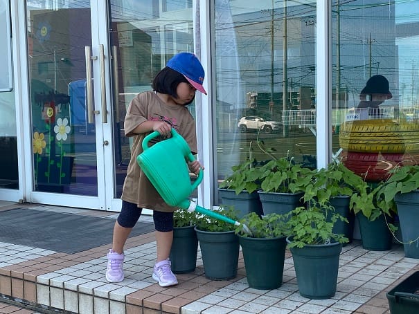 帰りを待つ夕方、水遊びで残ったお水をあさがおやふううせんかずらにかけるお手伝いをしてくれました!お手伝いたくさんありがとう♡植物たちも喜んでいたね!