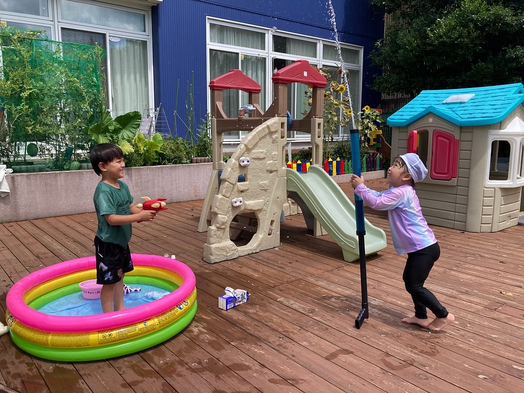 台風が過ぎ去り、また暑さが戻ってきましたね☀今日は晴れ間が見えてきたので、水遊びをして過ごしました♪牛乳パックでシャワーも作りました!