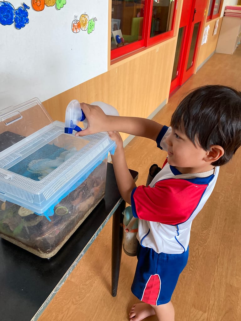 ワールドにいる「スズムシさん」のお世話もしました😀「リンリンリン~♪」廊下に響き渡って虫の音が心地よいね♪土を湿らせるといいそうです!