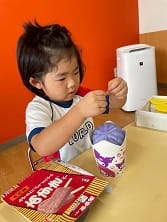 10月4日(土)土曜保育で廃材工作あそびを行いました。色々な廃材から好きな物を選び、自分の作りたいものを作りました。みんな夢中になって楽しく工作をしていました。船、貯金箱、アイスクリームが完成しましたよ☆とっても上手にできました!頑張って作った宝物♪お家に飾ってくださいね!