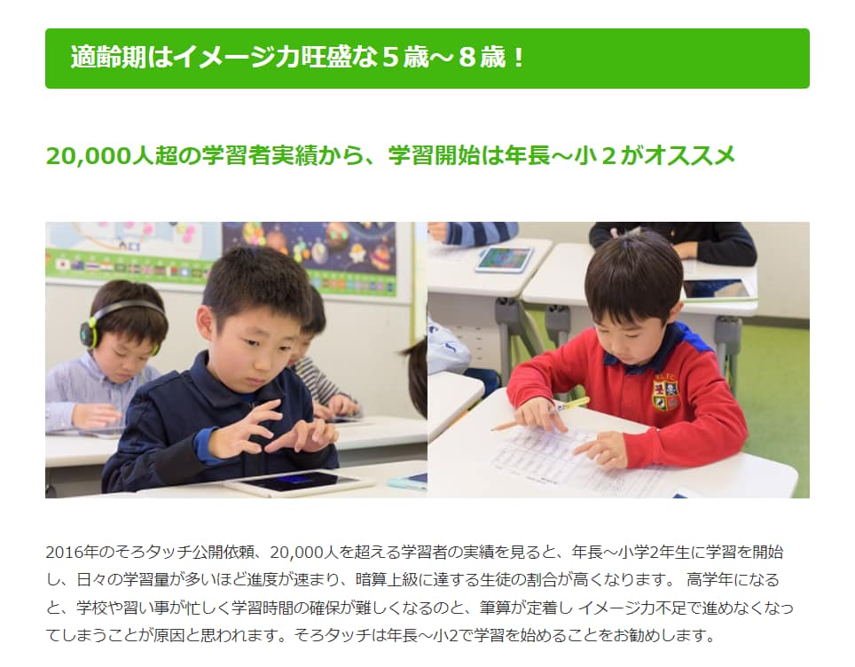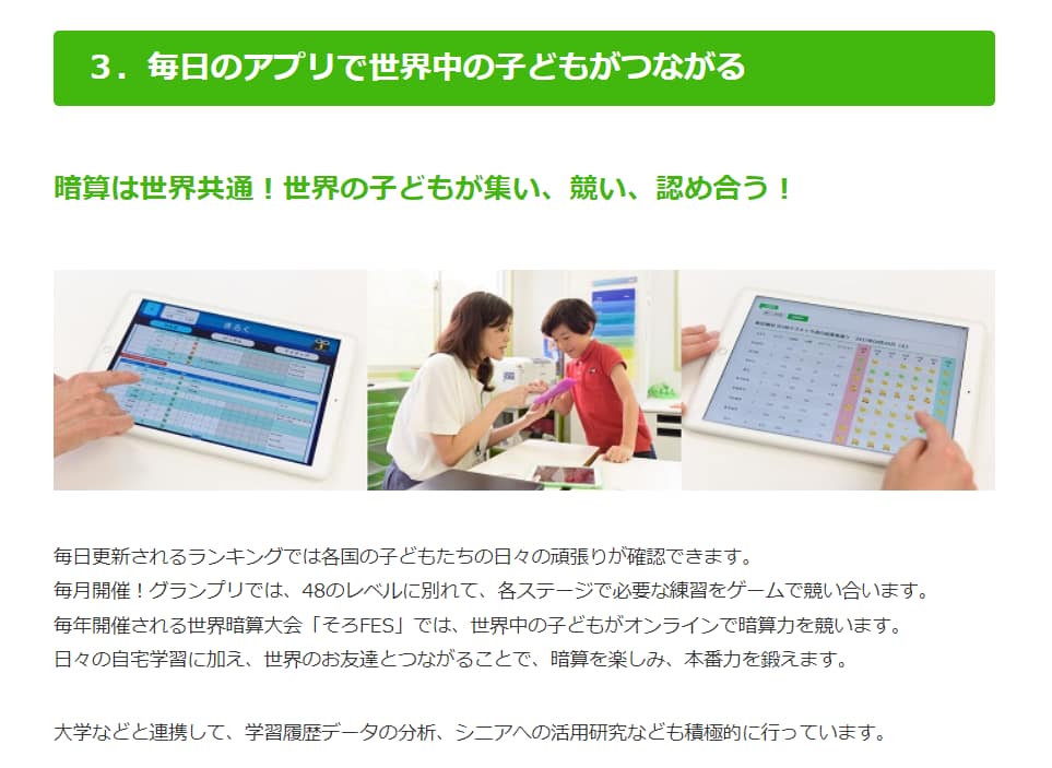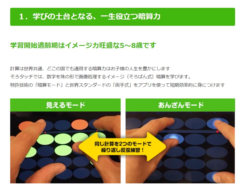 そろばんの仕組みを応用した特許技術!タブレットで学ぶ新しい暗算学習法です。