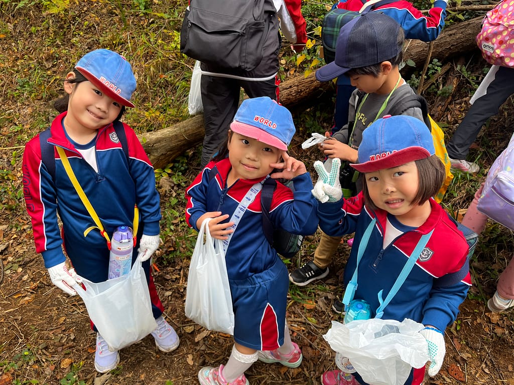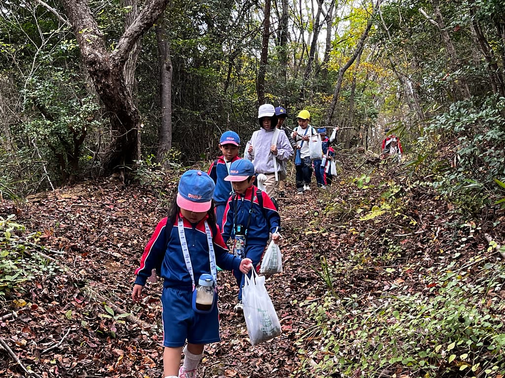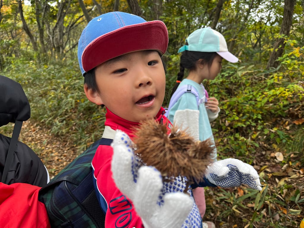 登る途中、どんぐりや松ぼっくり、栗などの木の実がたくさん落ちていて、お土産袋にせっせと入れていました😄昨年よりもた~くさん落ちていて、木の実拾いに夢中でした笑
